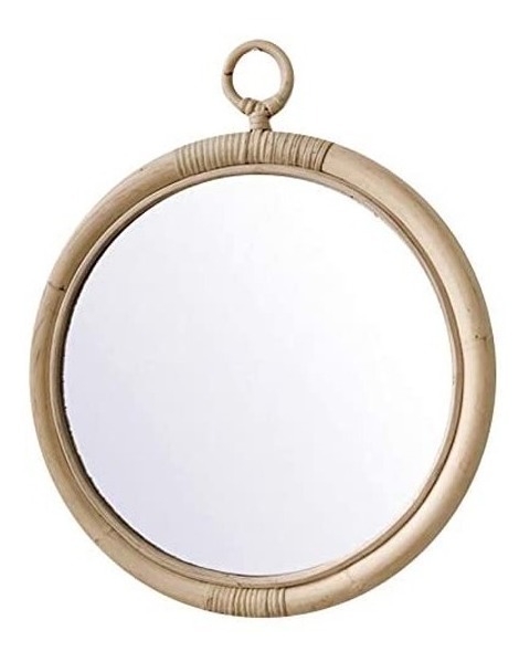 Espejo Colgante Pared Ratán Redondo Decoración 36 Cm