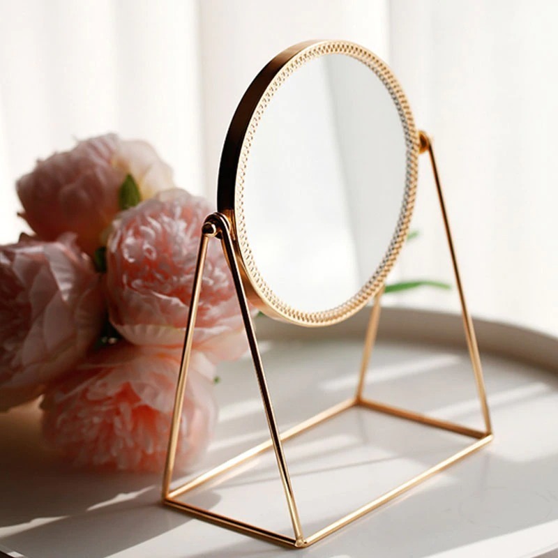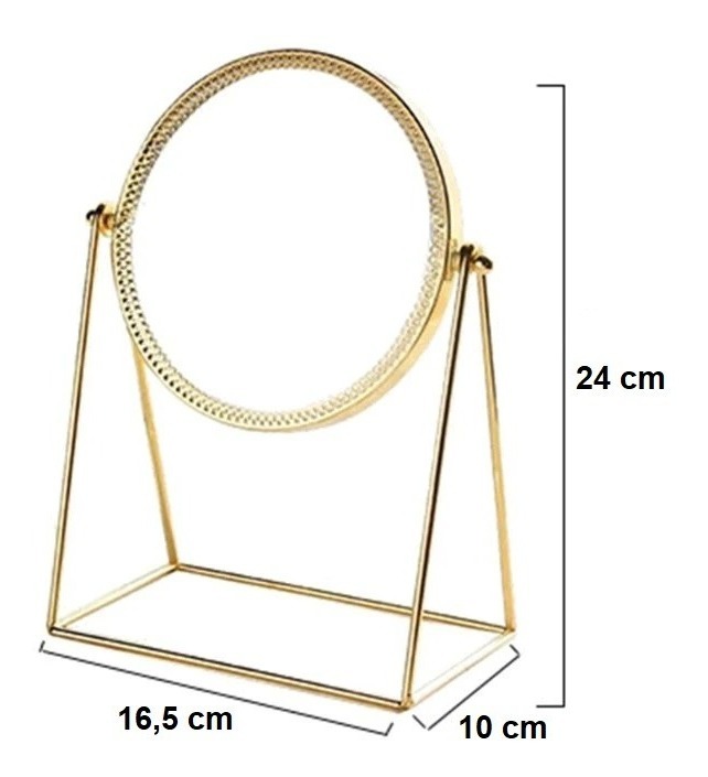 Espejo Tocador De Mesa Redondo Dorado Decorativo Maquillaje