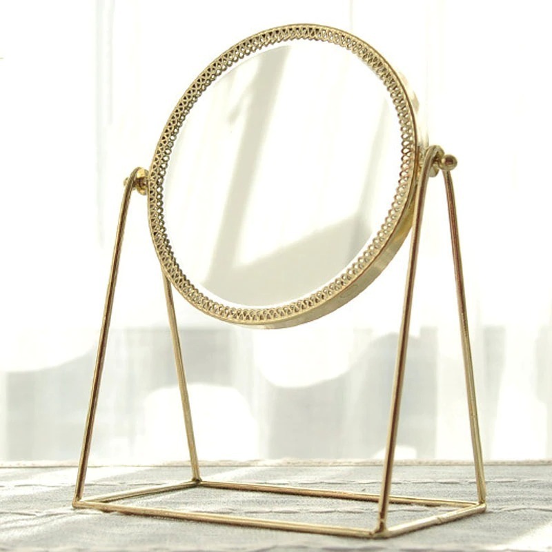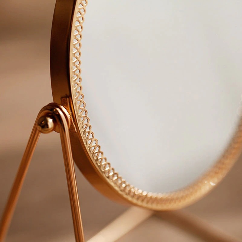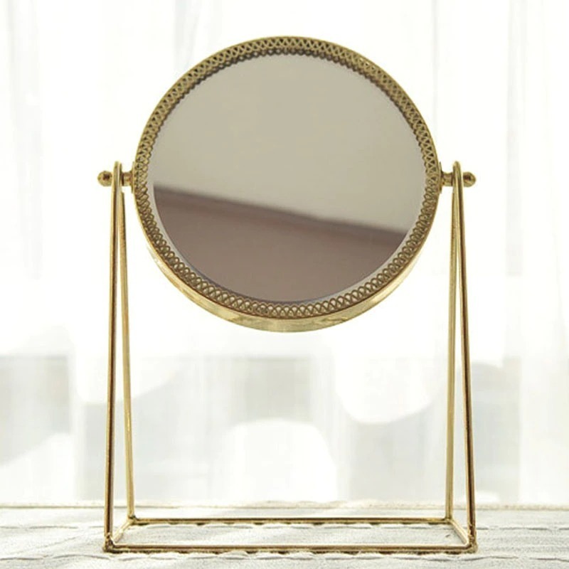 Este espejo decorativo de maquillaje hecho a mano está hecho de metal y espejo, combina la estética y la practicidad juntos. Es un tocador de maquillaje, un complemento perfecto para cualquier dormitorio o tocador, también es una decoración vintage perfecta para su hogar. Se puede girar 360 grados para ayudarlo a crear un maquillaje exquisito (es un espejo de tocador de una sola cara, que no tiene un efecto de aumento). Está hecho de metal resistente al óxido y a la corrosión. No se deforma ni se decolora fácilmente. Es fácil de mantener y se puede limpiar directamente con un paño húmedo o una toalla de papel. No solo es un espejo de maquillaje, sino también un adorno vintage perfecto.