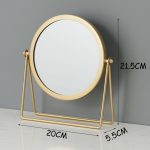 Espejo de mesa perfecto para maquillaje, combina la estética y la practicidad juntos. Es un tocador de maquillaje, un complemento perfecto para cualquier dormitorio o tocador, también es una decoración vintage perfecta para su hogar. Se puede girar 360 grados para ayudarlo a crear un maquillaje exquisito (es un espejo de tocador de una sola cara, que no tiene un efecto de aumento). Está hecho de metal resistente al óxido y a la corrosión. No se deforma ni se decolora fácilmente. Es fácil de mantener y se puede limpiar directamente con un paño húmedo o una toalla de papel. No solo es un espejo de maquillaje, sino también un adorno vintage perfecto.