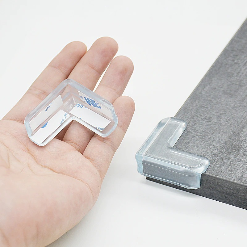 Set de 4 esquineros protectores fabricados en silicona transparente, diseñados para proteger a los niños de golpes contra bordes y esquinas de muebles. Fácil instalación gracias a su adhesivo 3M de alta calidad que garantiza una fijación segura y duradera. Ideal para mesas, escritorios y otros muebles, ofreciendo seguridad sin comprometer la estética del hogar.