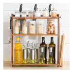 Este práctico estante organizador de bambú es ideal para optimizar el espacio en tu cocina. Con doble nivel, te permite colocar el microondas en una parte y usar la otra para almacenar utensilios, especias o pequeños electrodomésticos. Su diseño natural de bambú aporta un toque decorativo y resistente, perfecto para cualquier estilo de cocina.