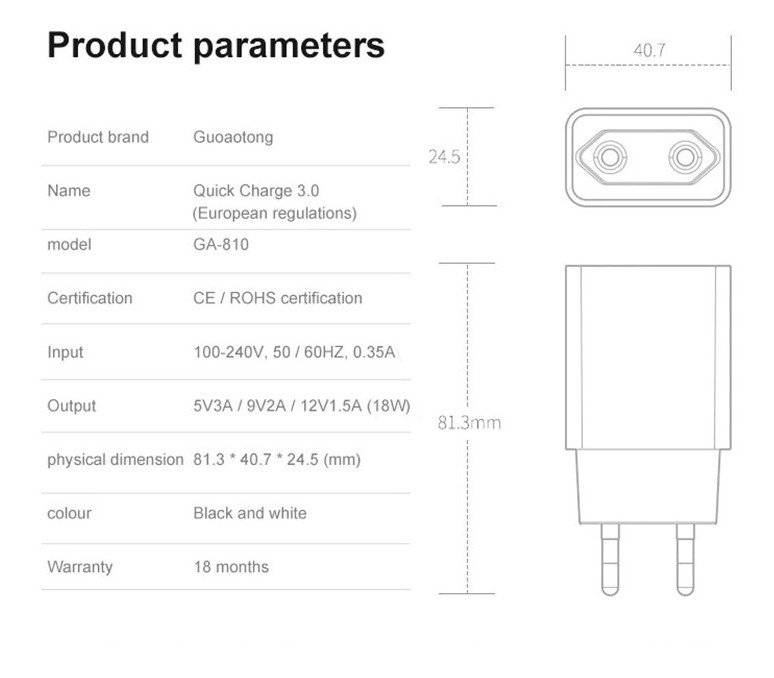 Ficha De Cargador Usb Qc Carga Rápida 3.0