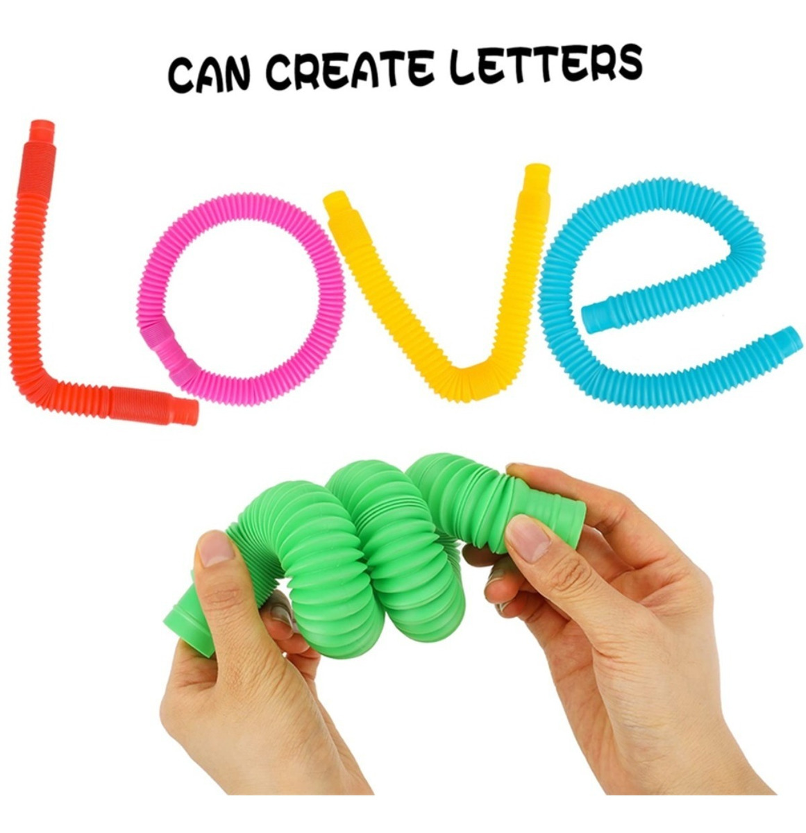 Nuevos pop tubes son conectores en miniatura, ¡y dicen que las cosas buenas vienen en paquetes pequeños! Asegúrese de reventar, romper, estirar, girar, conectar y mantener el dedo meñique ocupado durante varias horas El tubo elástico empaquetado de colores es adecuado para todas las familias y es un juego ideal para los niños. El tubo pop ayuda a desafiar esas manos que se mueven en varias direcciones. Este juguete está diseñado para ayudar a aquellos que luchan con trastornos de procesamiento sensorial y habilidades motoras finas. ¡Una gran opción para juguetes para el autismo! Cuando el tubo expandible se estira o se comprime, el tubo hará un sonido de estallido. Luego puede juntar los tubos retráctiles y conectarlos para crear muchos sonidos interesantes.. Sea innovador girando, conectando y doblando el tubo de tracción en formas y letras coloridas. El tubo pop también ayuda a mejorar la coordinación bilateral y se puede utilizar como un juego de fisioterapia.