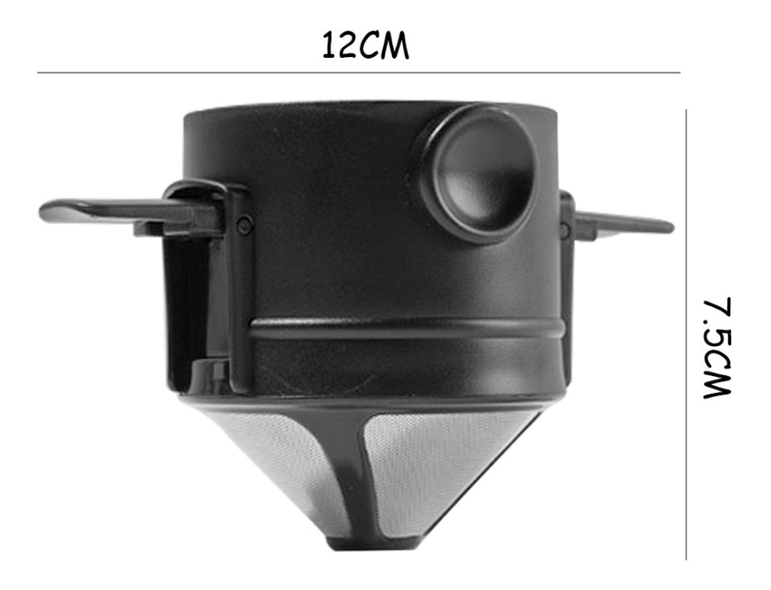 Filtro de cafe goteo portatil plegable reutilizable sin papel, fabricado en resina ABS resistente a temperatura con filtro en acero inoxidable perforado a láser para un goteo fácil tanto de café como de té.