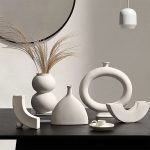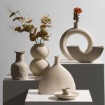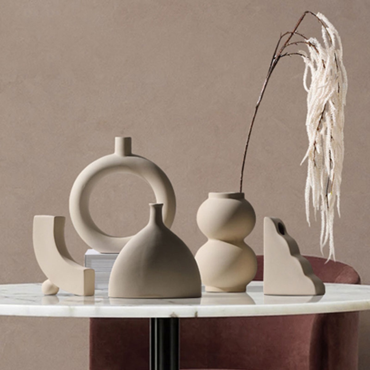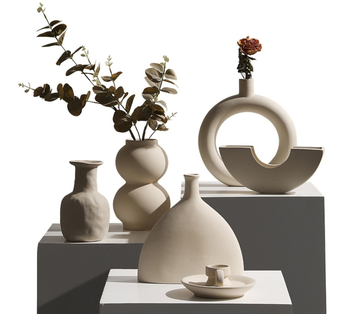 Florero vasija moderna en cerámica con terminación lisa, estilo minimalista varios diseños