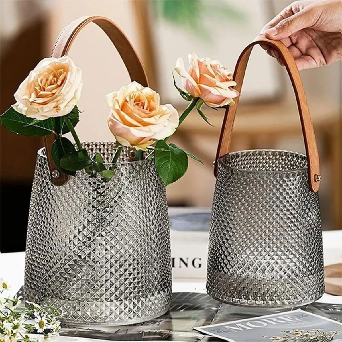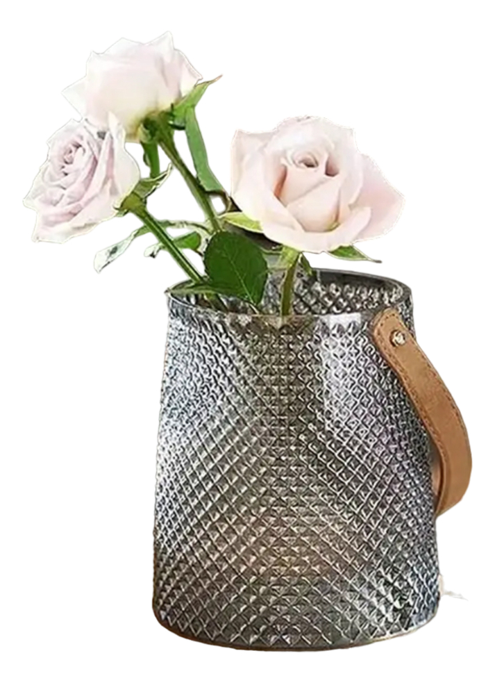 Florero De Vidrio Con Correa En Cuero Pu Grande Decoración