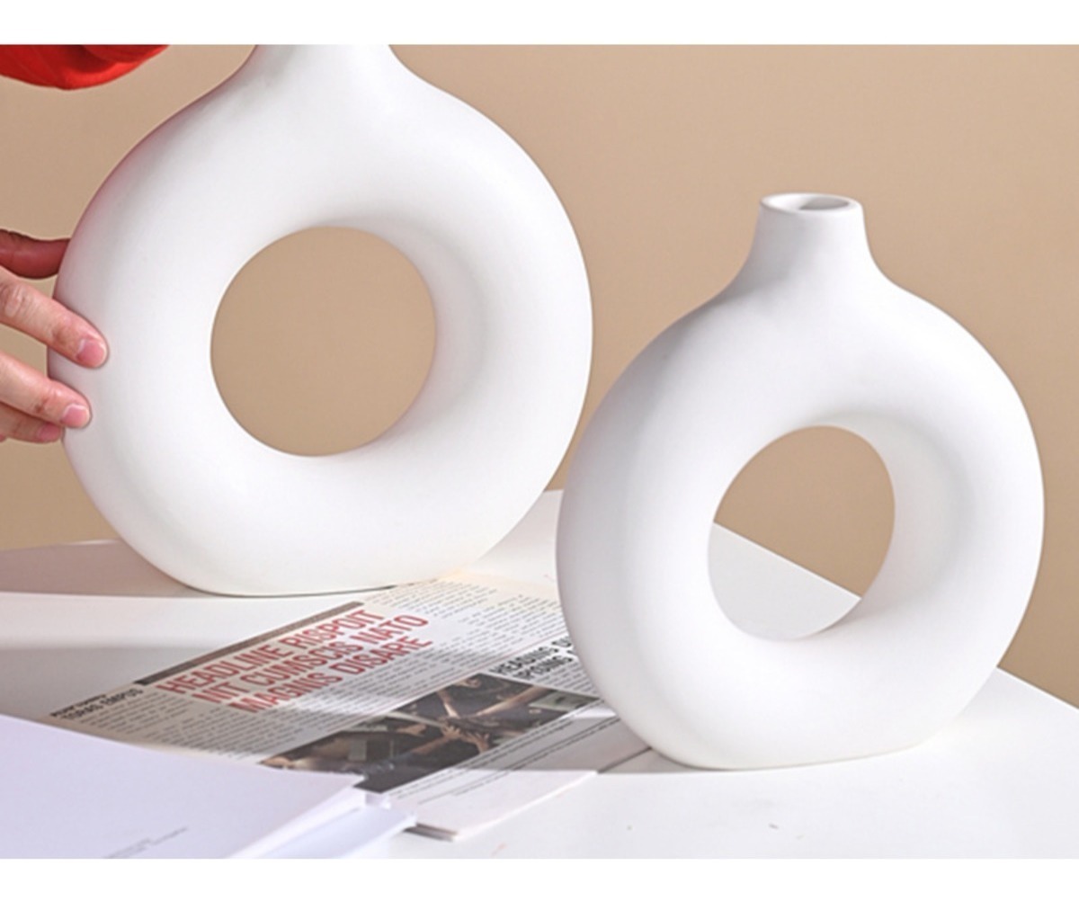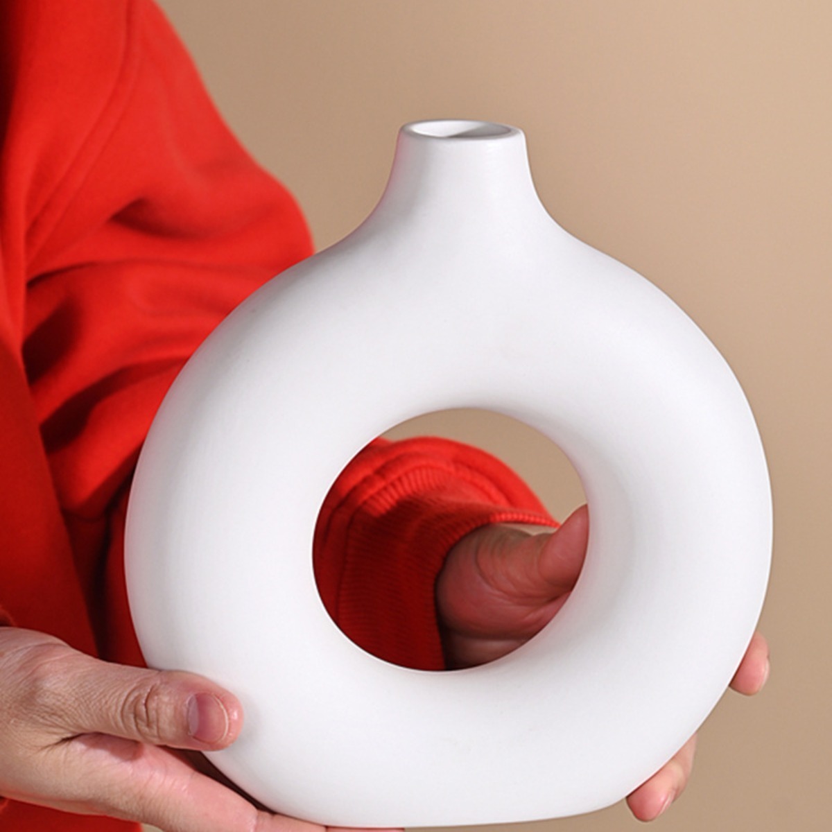 Florero Delicado Moderno Circular Ceramica Semi Liso Mediano