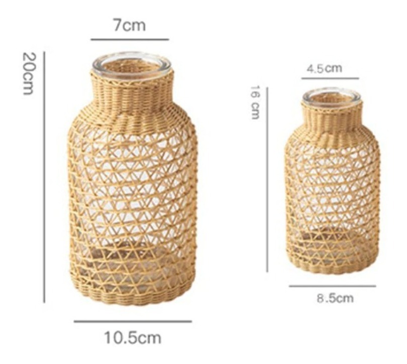 // FLORERO DECORATIVO DE VIDRIO CON MIMBRE //