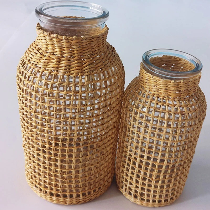 Florero Frasco Bollón Decorativo De Vidrio Con Mimbre Grande |
