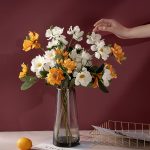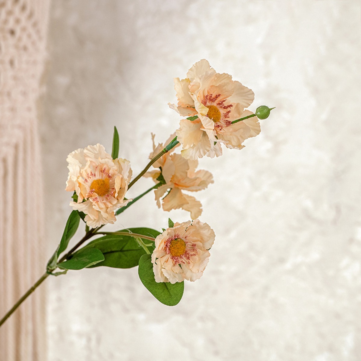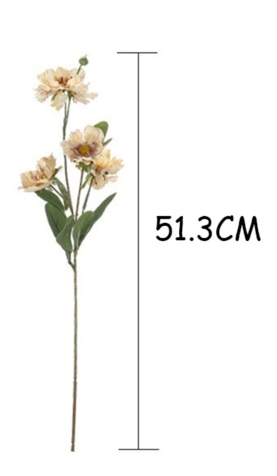 Ramo de flores artificiales estilo crisantemo salvaje, cada ramo trae 4 flores maduras. Perfecto para usar de centro de mesa, decorar una habitación, etc. El cabo puede recortarse fácilmente con tijeras o alicates, una solución perfecta para ajustarlo adecuadamente a un jarrón, independientemente de si es bajo o alto.