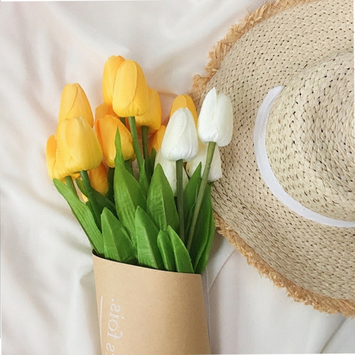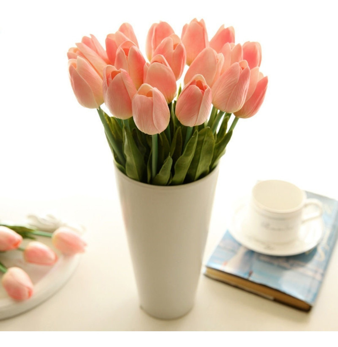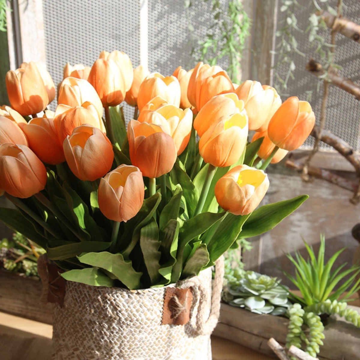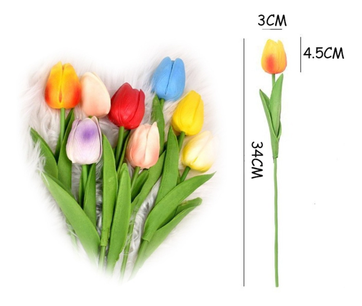 Hermosos tulipanes artificiales de vivos colores. Ideales para darle un toque de color a tu hogar.