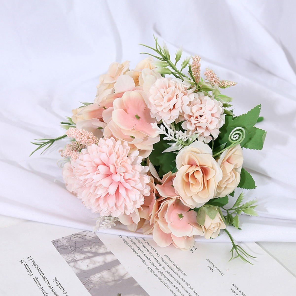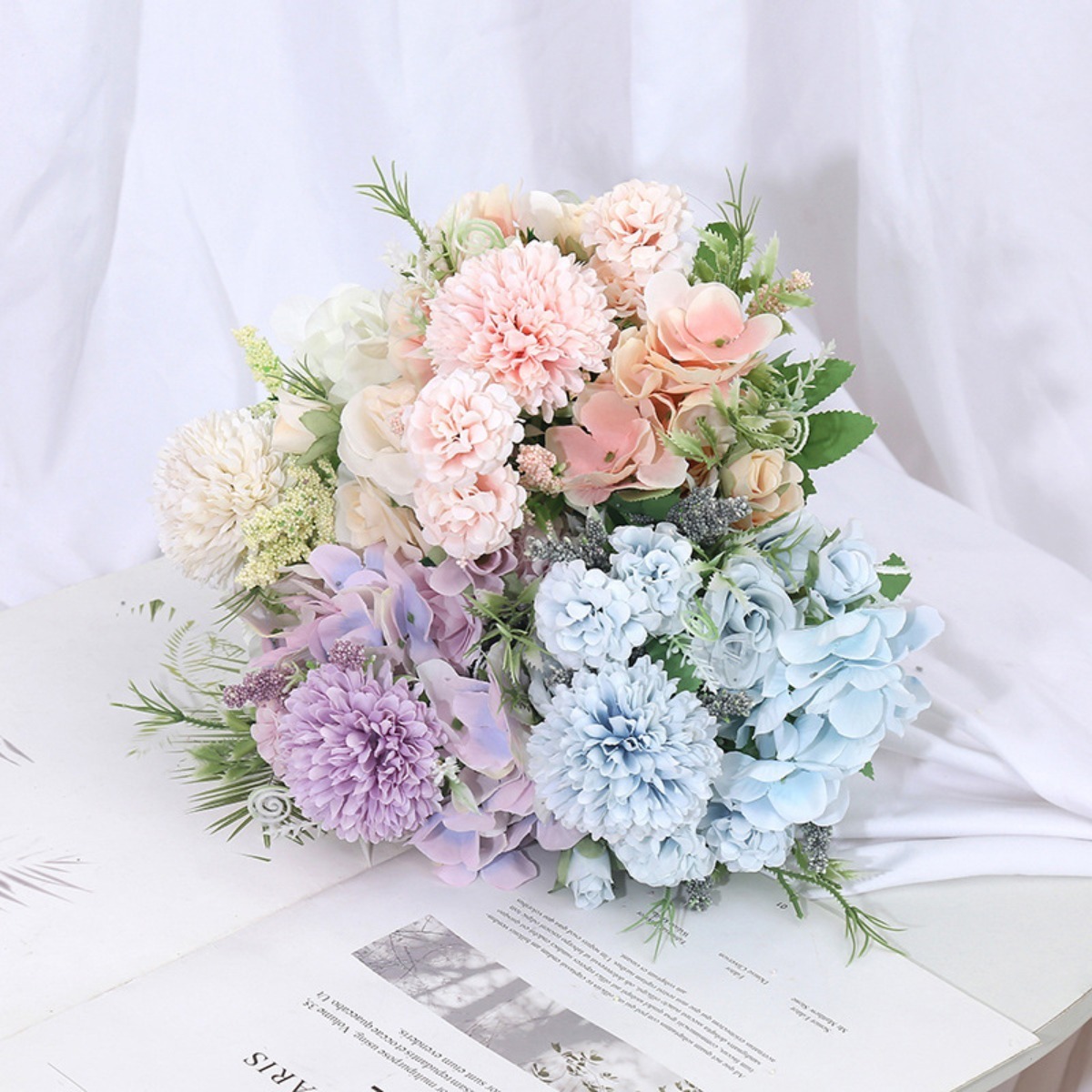 Ramo de flores artificiales variadas, ideal para decorar cualquier espacio de tu hogar. Cada ramo incluye 7 flores diferentes, cuidadosamente diseñadas para aportar elegancia y estilo.