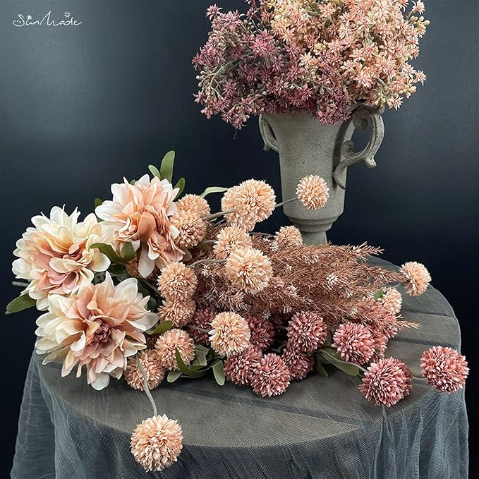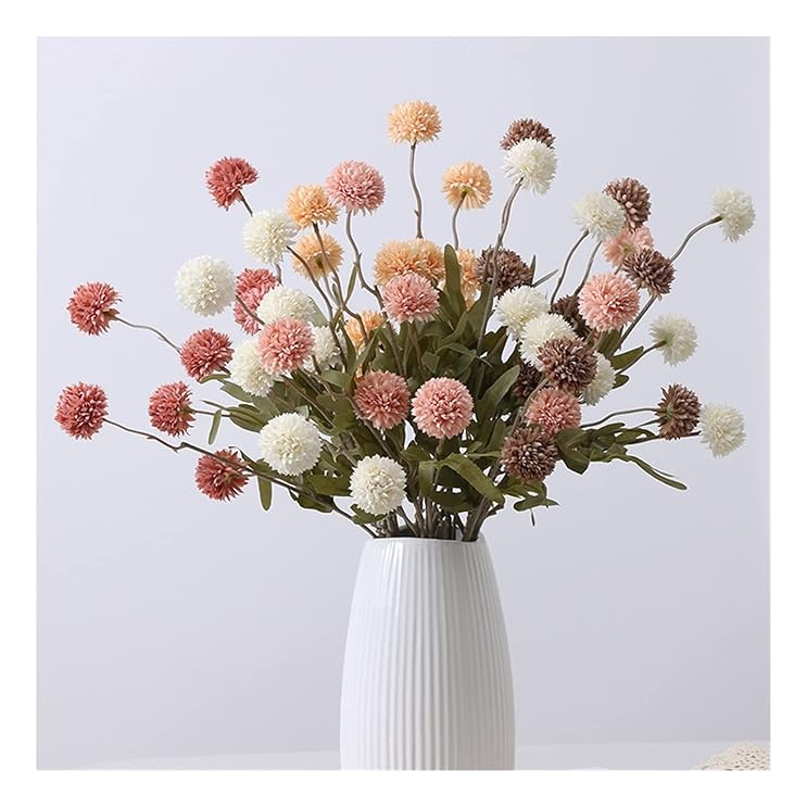 Varilla de flores artificiales diseño diente de león. Cada varilla trae 5 flores. Perfectas para usar como centro de mesa, decorar una habitación, un baño, etc. El cabo puede recortarse fácilmente con tijeras o alicates, una solución perfecta para ajustarlo adecuadamente a un jarrón, independientemente de si es bajo o alto.