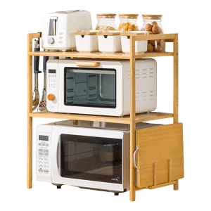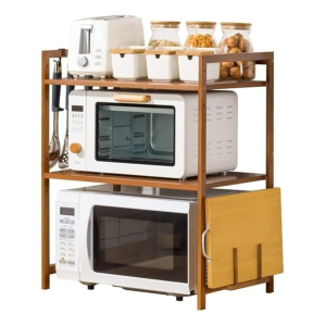 Estante Organizador De Bambu Para Microondas Cocina Doble
