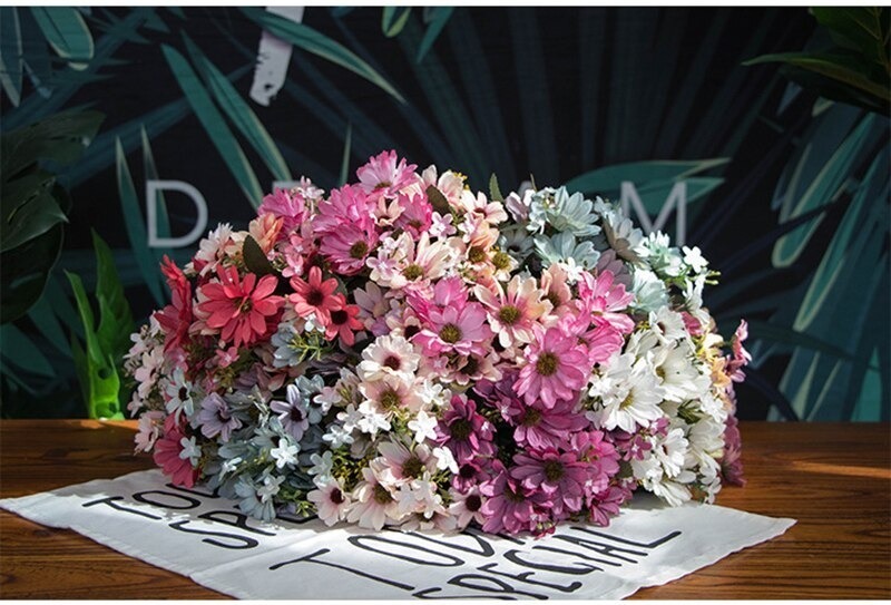 Flores Artificiales Margarita Sol Flor Boda Ramo Decoración