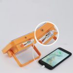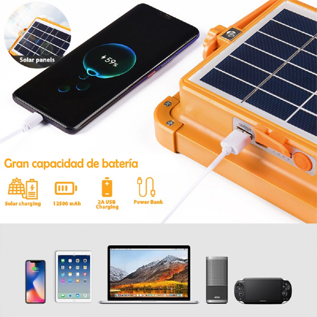 Foco solar con entrada para cargador de celular. Perfecto para camping, emergencias o apagones.