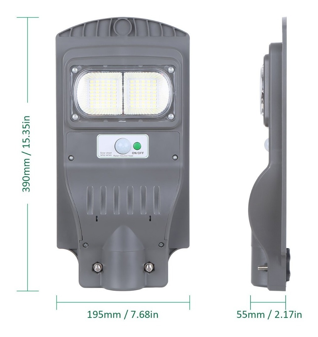 Características – IP67 – Potencia: 30W equivale a 300W – Tiempo de recarga 6 a 8 hrs – Encendido toda la noche en modo 50% – Resistente al intemperie – Flujo luminoso 100Lm/W – Batería de litio 3.2V 18000 MAH – Material anti-oxidación ABS + paneles solares policristalinos. – Panel solar de silicio monocristalino. – Fuente de luz LED de alta calidad. – Area de cobertura: 80 m2 – Altura recomendada de instalación: 3 a 5 metros. – Angulo de iluminación: 120° – Nivel de protección: IP67 apto Exterior – Color: Negro – Vida útil: 70.000 hs