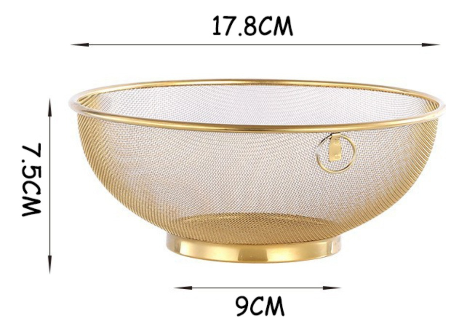 Frutero moderno diseño colador en malla de metal, ideal para usar como centro de mesa, para colocar fruta, papeles, llaves etc.
