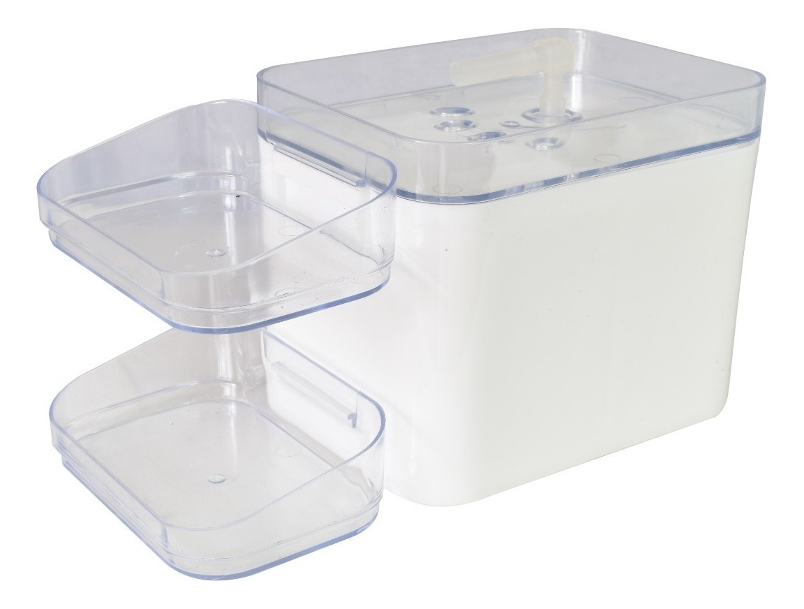 Puedes utilizarla sólo como fuente bebedero o también colocar una o dos bandejas para alimento de mascotas.