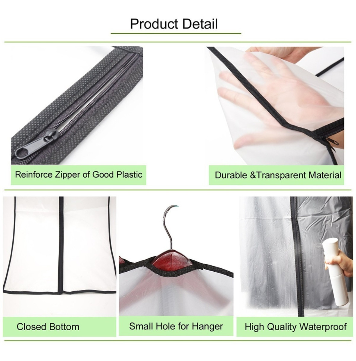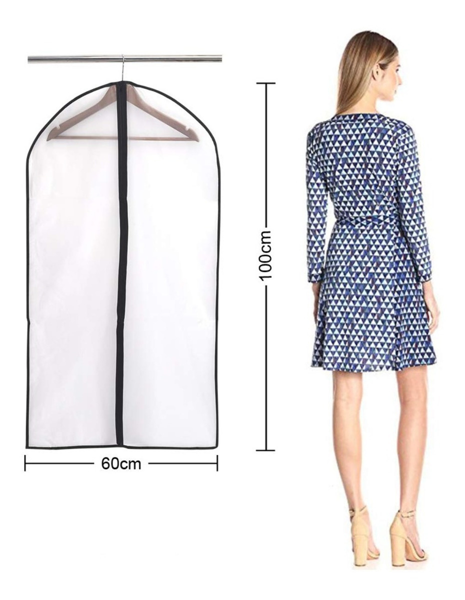 Funda protectora para trajes y vestidos largos, ideal para proteger sacos, gabardinas y otras prendas delicadas. Fabricada en PVC, esta funda resguarda la ropa del polvo, humedad y polillas. Cuenta con cierre y una abertura para colocar fácilmente una percha, manteniendo tus prendas organizadas y en perfecto estado.