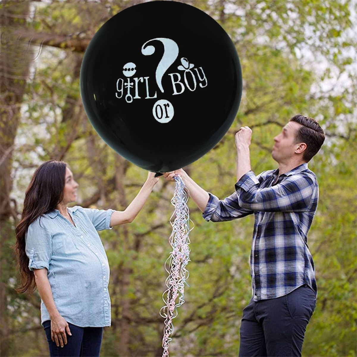 Globo gigante para fiesta de revelación del género del bebé. Tamaño aproximado inflado 85cm-90cm Cada diseño viene con papelitos celestes y rosa.