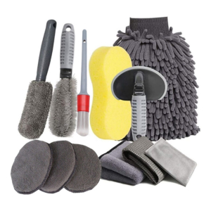 Kit Lavado Secado Auto Paños Mic Esponja Cepillo Guante 12pc