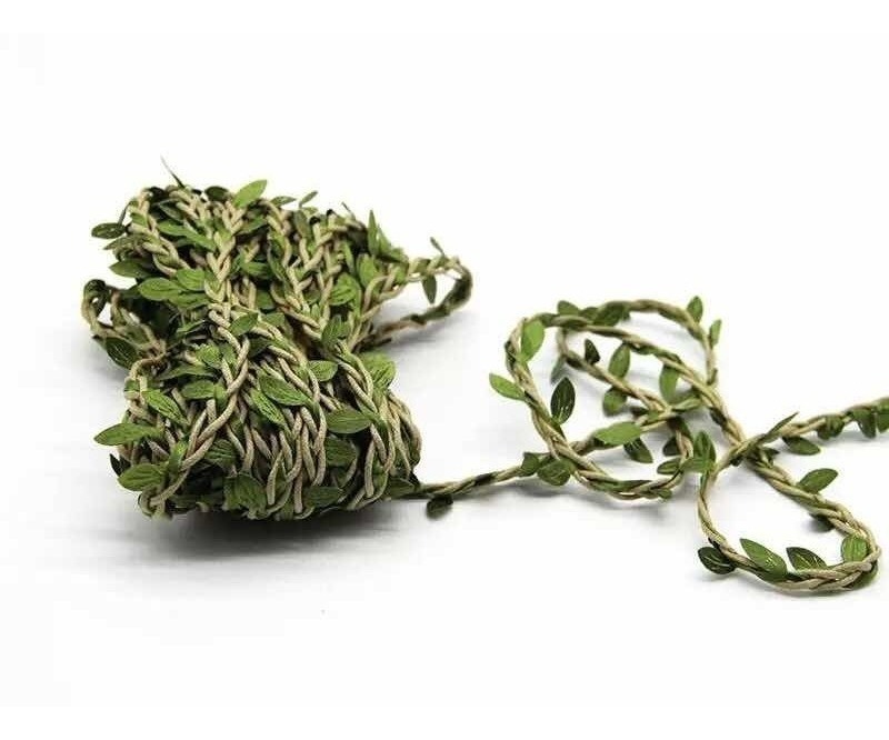 Guirnaldas de flores artificiales hechas a mano de hojitas verdes, medida: de 10 metros de largo y 0,5 mm ancho, ideal para decoración de cumpleaños, bodas, para realizar tiaras y decorarlas.
