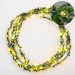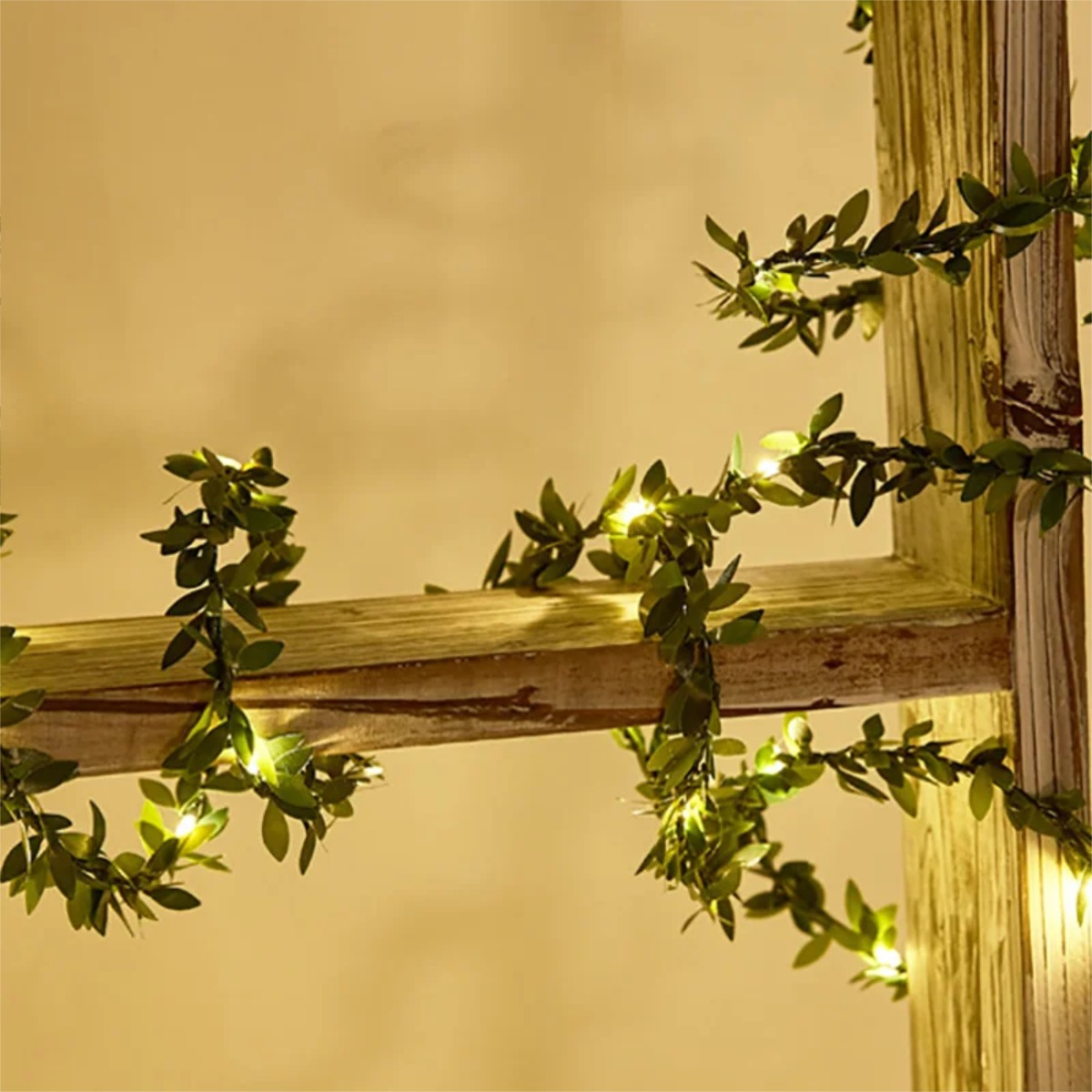 Guirnalda decorativa con hojitas verdes y luz cálida, ideal para darle un toque primaveral y único a tu espacio. Con 2 metros de largo y 20 mini LEDs, es perfecta para decorar jardines, patios, balcones o cualquier rincón de tu hogar. Funciona con 2 pilas (no incluidas) y es apta para uso tanto interior como exterior. ¡Un detalle delicado y luminoso para tu decoración!