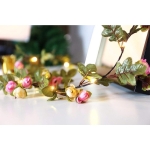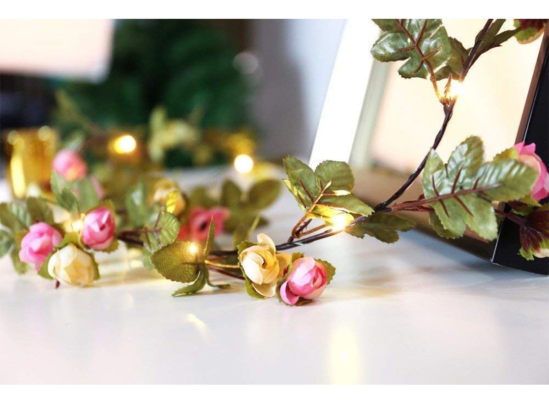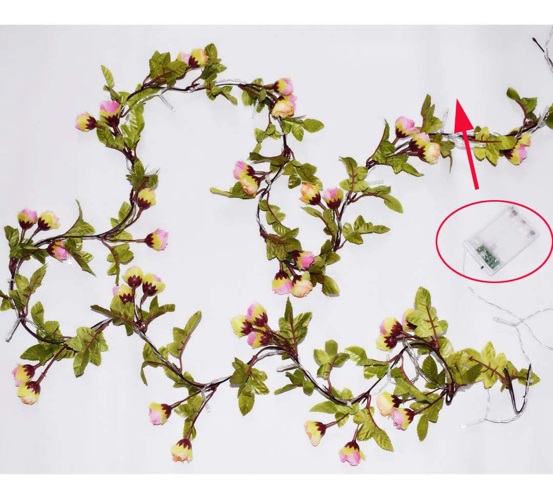 – Guia, gurinalda de luces y rosas. Hojas y flores de seda con impresión 3D y tallos está hecho de plástico. Totalmente de 2.2m de longitud y 25 bombillas led, diámetro de la flor: 2,5cm. Hermosas flores rosas con suave luz blanca cálida, iluminarán su jardín o patio y agregarán un ambiente alegre a su fiesta y vacaciones. – Estas lindas luces de hadas producirán una acogedora luz blanca cálida que añade mucho toque festivo y divertido. Decoración de iluminación perfecta para dormitorio, dormitorio, galerías, Navidad, San Valentín, Día de la Madre y del Padre y cualquier fiesta, etc. – PORTABLE Y FACIL DE USAR- No incluye pilas. Sólo tiene que instalar las baterías en la caja de la batería y puede funcionar ahora. La pequeña batería es con interruptor deslizante de encendido / apagado / flash, conveniente para operar la luz de hada de la cuerda y disfrutar de ella. Flexible, portátil y fácil de almacenar. Las luces de cuerda de rosa pueden ser fácilmente para satisfacer sus necesidades de decoración. – PARA AMBOS: DIA Y NOCHE – Funciona excelentemente como una guirnalda para decoraciones interiores o exteriores durante el día. Por la noche, el LED iluminado en su cuerda acentuará cualquier habitación y generará un ambiente cálido para cualquier ocasión. Las flores son de diseño suave y bastante resistente. Dobla y ajusta a cualquier forma que te guste para tus necesidades de decoración.
