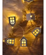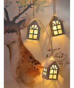 Guirnalda De Casitas Con Luz Led Madera Fina