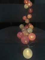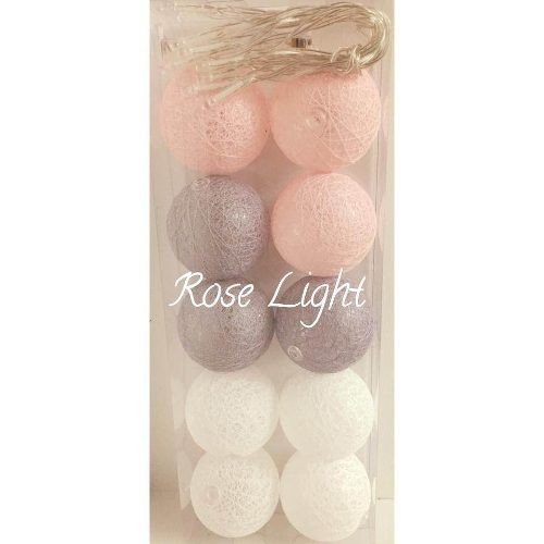 La guía es de 10 esferas plástica de hilo en combinación de colores rosa con blanco , mide 1,75 aprox. y su funcionamiento es a pila (no incluidas), luz cálida. Divinas para decorar cualquier espacio! Consultar colores