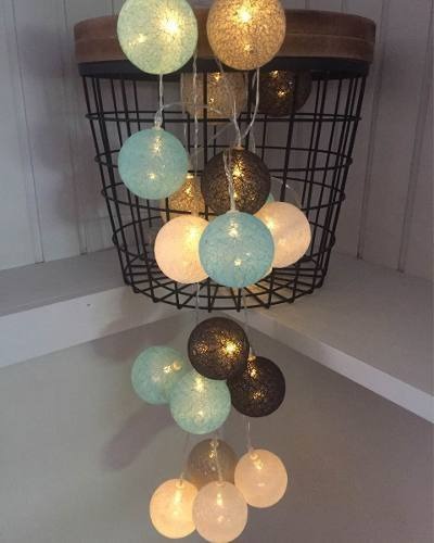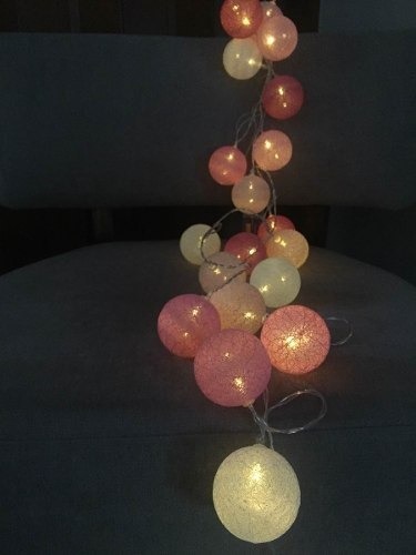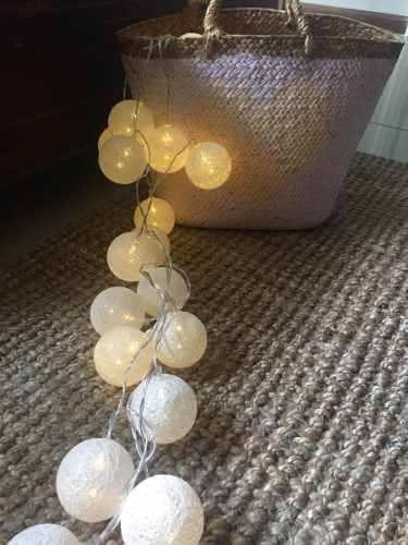 La guía es de 10 esferas plástica de hilo, mide 1,75 aprox. y su funcionamiento es a pila (no incluidas), luz cálida. Divinas para decorar cualquier espacio! Consultar colores
