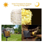 – Novedoso producto para decoración a luz solar. – 100 Mini Luces LED luciérnagas en luz blanca cálida a luz solar. – Largo total 10 metros. – Funciona a luz solar.