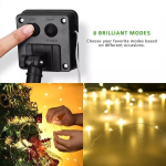 Estas guirnaldas de luces solares son la solución perfecta para iluminar tu espacio exterior de manera fácil y económica. Gracias a su sensor de luz, se encienden automáticamente en la oscuridad y tienen 8 modos de iluminación para elegir. Además, cuentan con una función de memoria para recordar la última configuración de modos y son resistentes al agua (IP65), lo que significa que pueden soportar cualquier clima. Son muy fáciles de instalar con su panel solar con estaca y luces de alambre de cobre, lo que las hace perfectas para decorar tu jardín, patio, porche, árbol, techo, terraza o habitación.