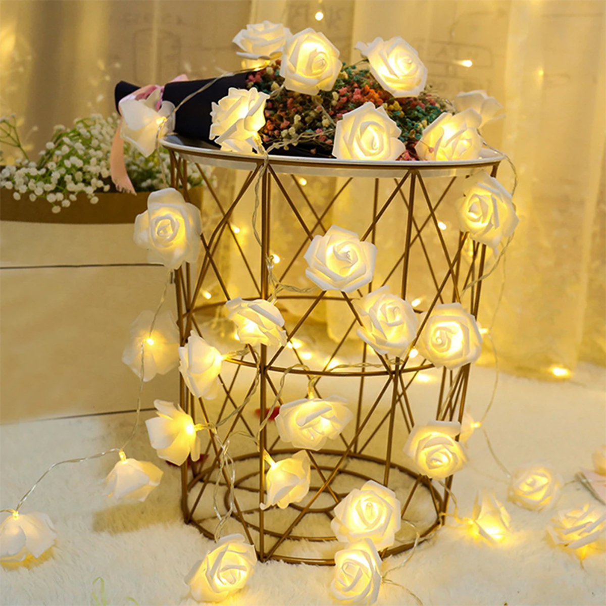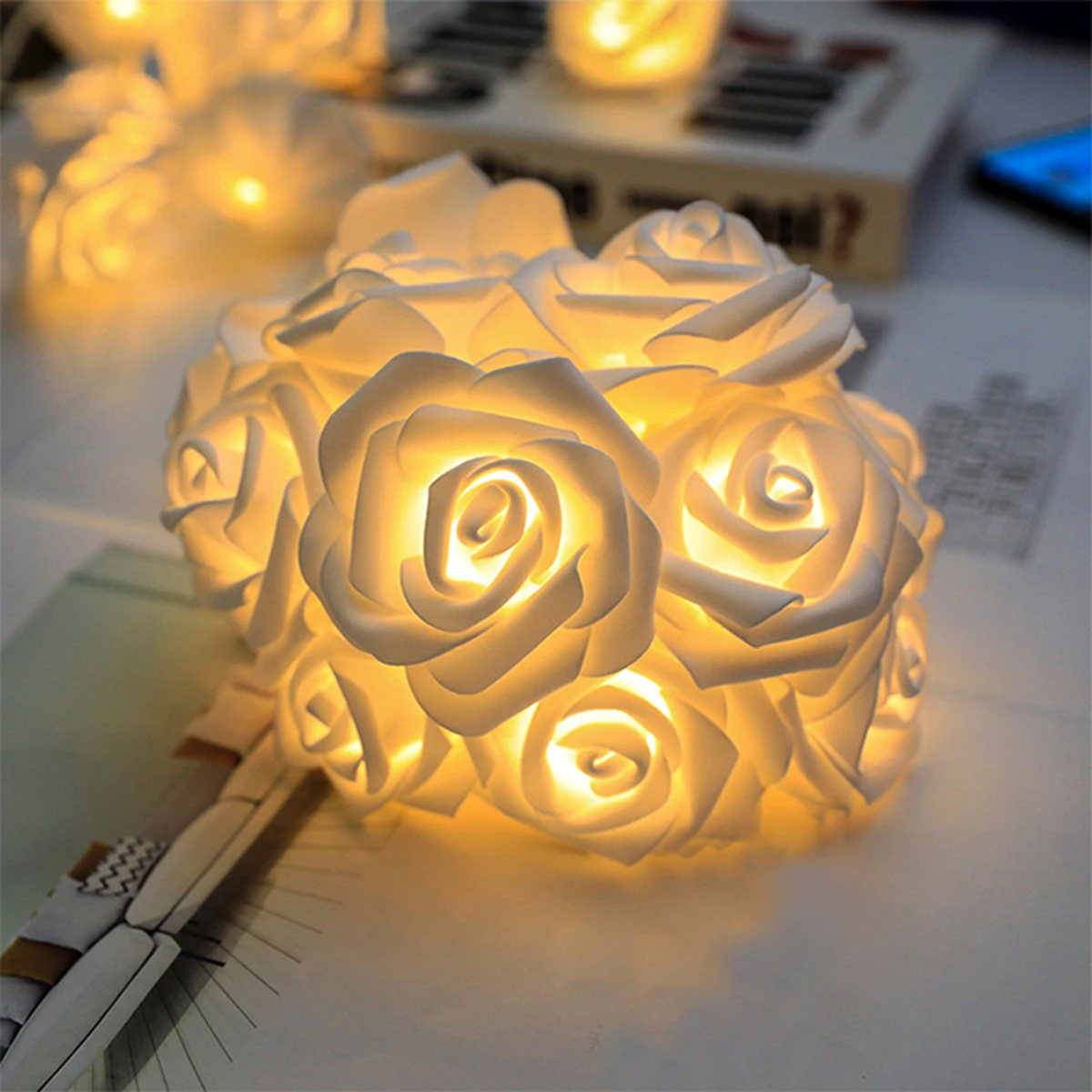 Guirnalda Luces Led USB Flores Rosas Blancas Calido
