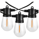 Decora tus espacios exteriores con esta guirnalda de 10 luces LED estilo vintage. Hecha de plástico resistente y de alta calidad, es ideal para jardines, terrazas o patios. Resistente a la intemperie, ofrece luz cálida y suave. Además, las bombillas de bajo consumo son duraderas y eficientes. Se puede conectar hasta 35 guías de este mismo modelo entre si y su conexión es con enchufe de dos patas. Resiste caídas y diferentes condiciones climáticas, siendo perfecta para eventos al aire libre o para crear un ambiente acogedor en tu hogar.