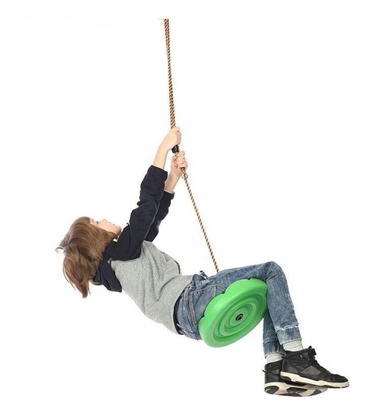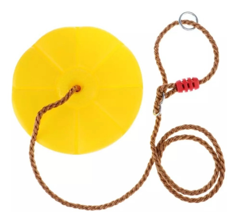 Columpio de disco con cuerda súper divertido! Material: plástico y fibra de poliéster Carga Máxima: 150 kg Apto para niños de 5 años Diámetro del disco: 30 cm aproximados Longitud de la cuerda: 1.6 m aprox. Incluye: asiento oscilante de 1 pieza y 1 cuerda de 1 pieza.
