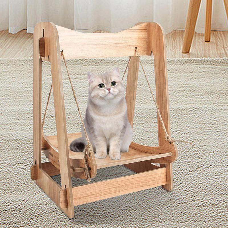 Hamaca columpio para gatos, cama colgante de madera para gatos para las cuatro estaciones, cama general para mascotas, accesorios para gatos para mascotas fáciles de montar y separar