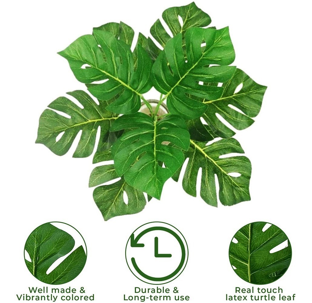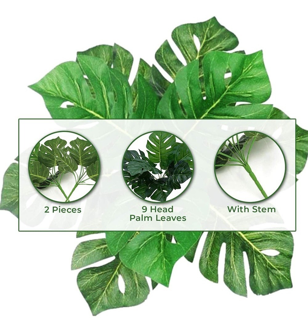 Especificación: – Color verde – Material: Plástico Tipo: hoja de tortuga (9 cabezas), hoja de primavera (9 cabezas). Tamaño: (después de desplegarlo, aprox. Altura * largo * ancho, cm / pulgada) Largo total mas tallo: 31 cm (aprox) Ancho de hoja:12 cm (aprox) Largo de hoja: 14cm (aprox)