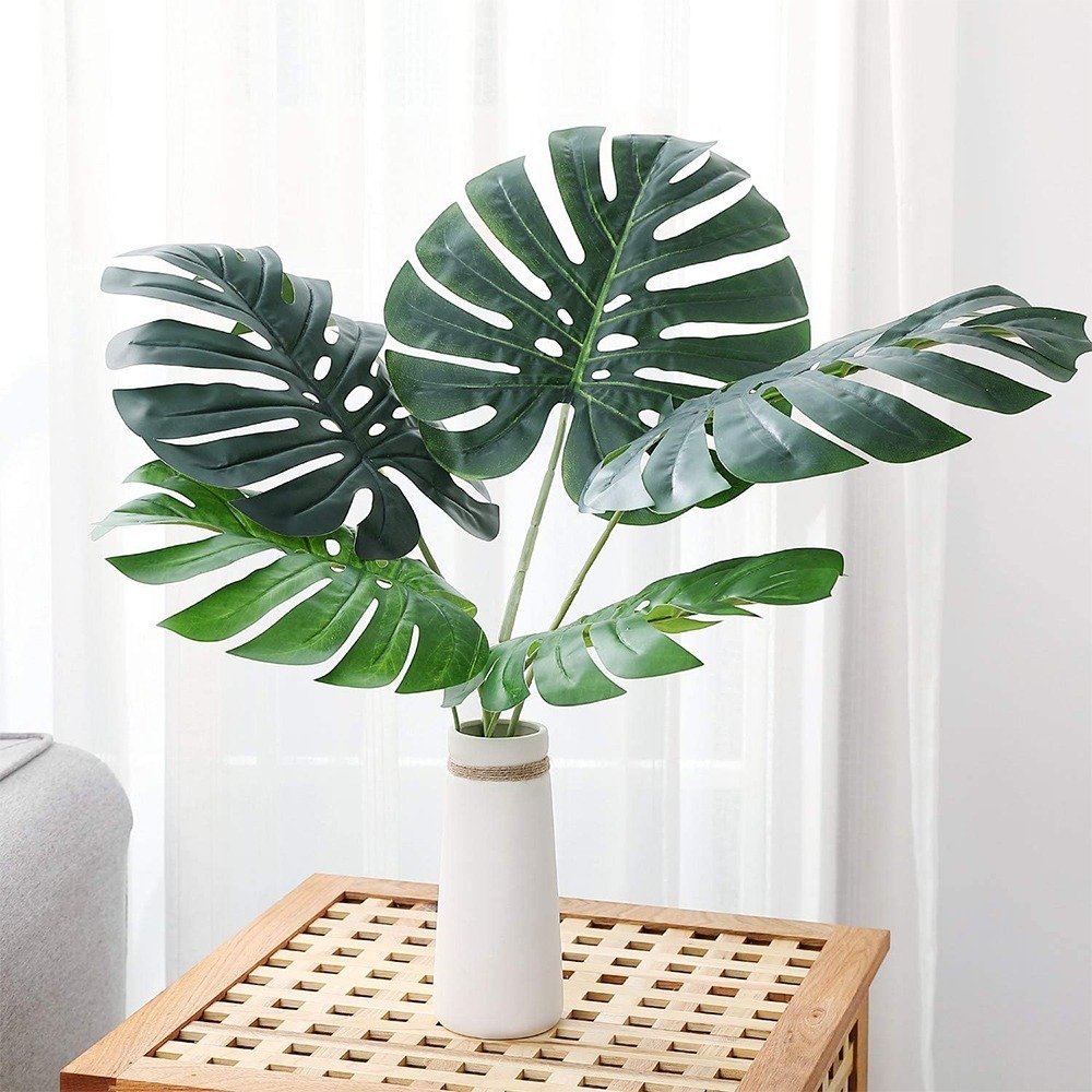 – Colores vibrantes y muy reales. – Material: cada hoja está hecha de plástico y sus tallos son de poliéster sobre un centro de alambre. – Se puede doblar y ajustar de cualquier manera. – El tallo se puede acortar mediante alicates. – Medida 60*22 cm / Hoja 28cm