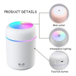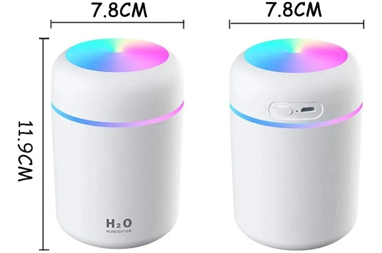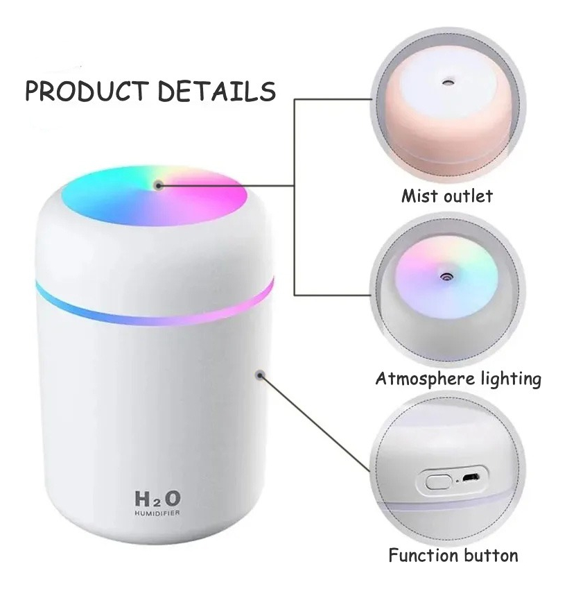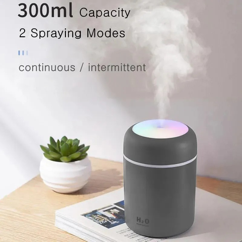 Humidificador de aire H2O de 300ml, difusor de Aroma portátil Mini USB con niebla fría. Mini humidificador de aire Difusor de aceite aromático. Tanque de agua de 300ml. Con luz nocturna colorida.