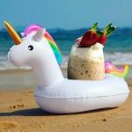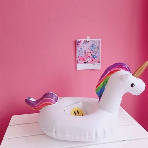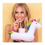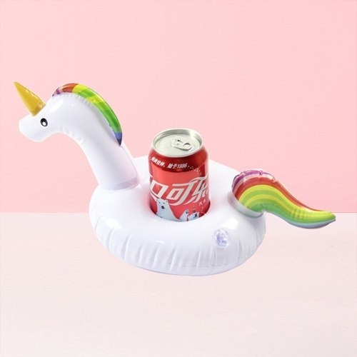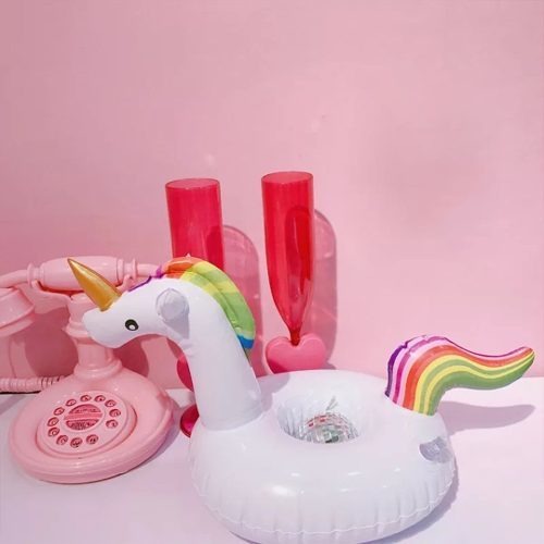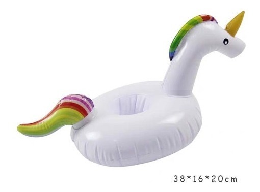 Inflable mini porta vaso en forma de unicornio, ideal para usar en la piscina. Perfecto para mantener tus bebidas a mano mientras disfrutas del agua, brindando un toque divertido y práctico a tu día de piscina.