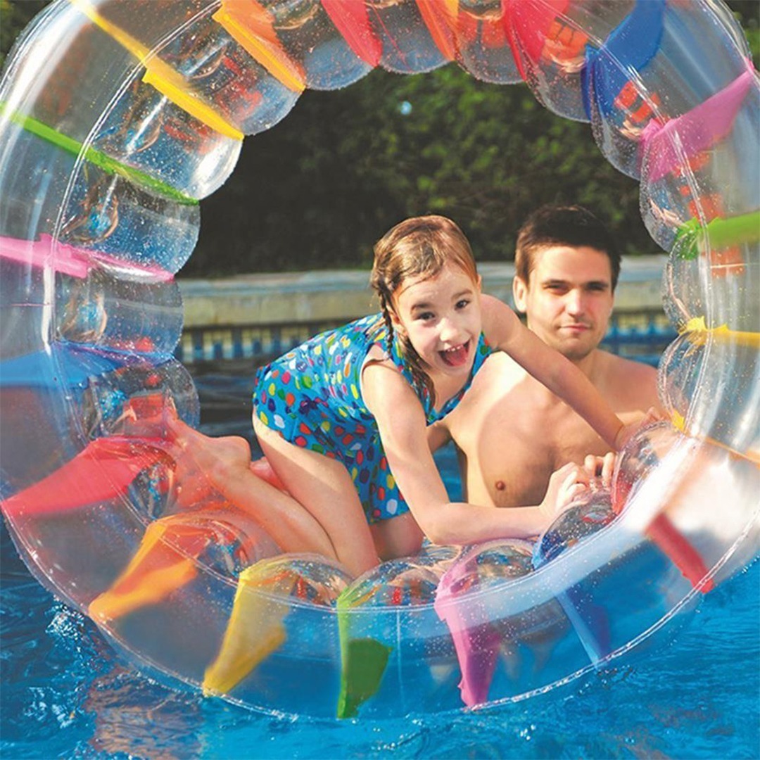 Rueda de agua grande y colorida para niños para una experiencia divertida en la piscina Construcción robusta, hecha de material de PVC resistente. Recomendado para mayores de 3 años con supervisión de un adulto. Dimensión aproximada en pulgadas cuando está inflado, 132 cm de diámetro exterior, por 64 cm x 89 cm de diámetro interior ancho.
