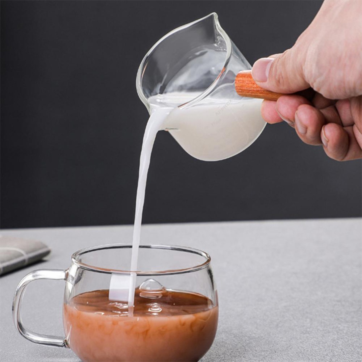 Jarra medidora en vidrio con mango de madera, capacidad 70ml