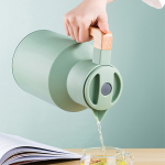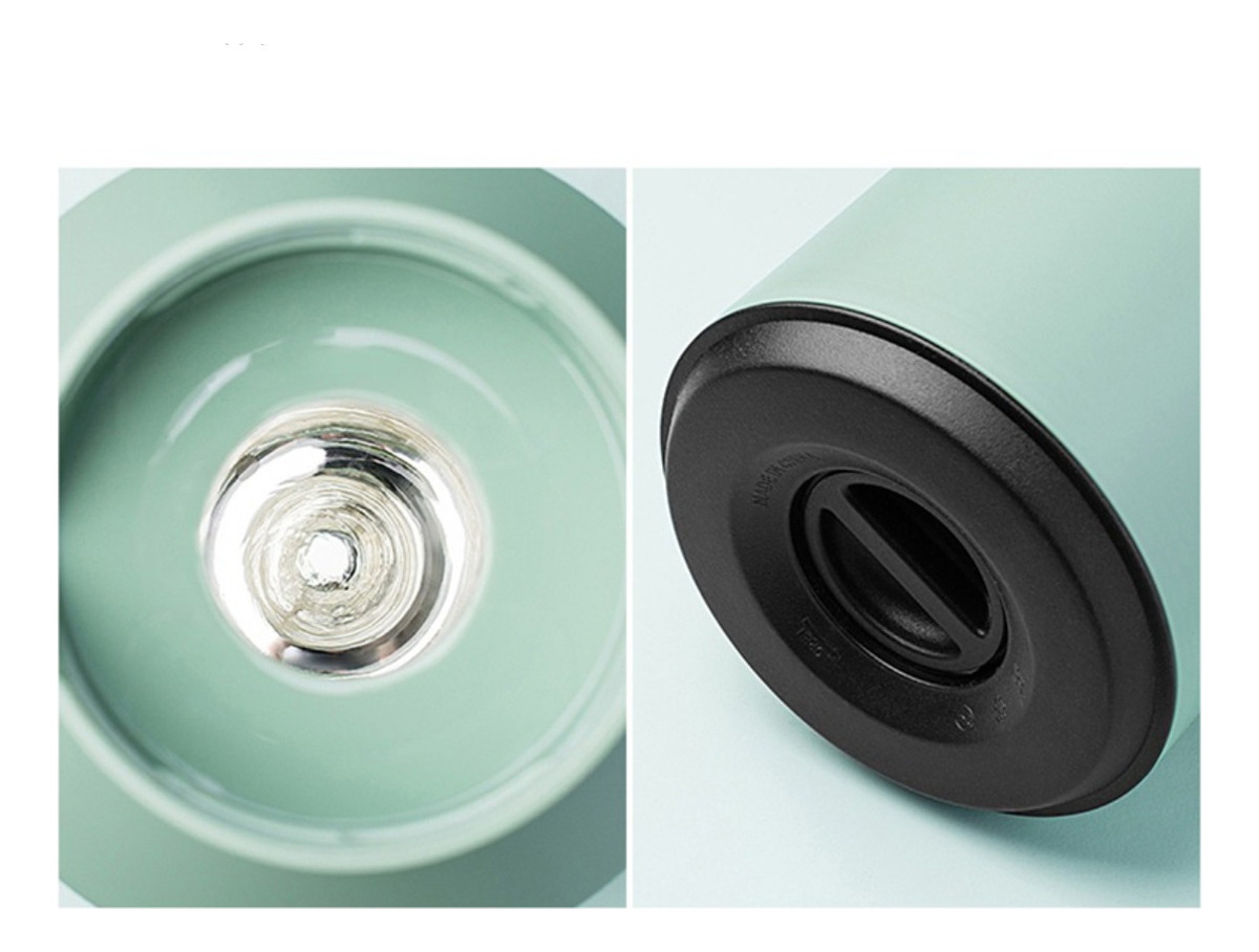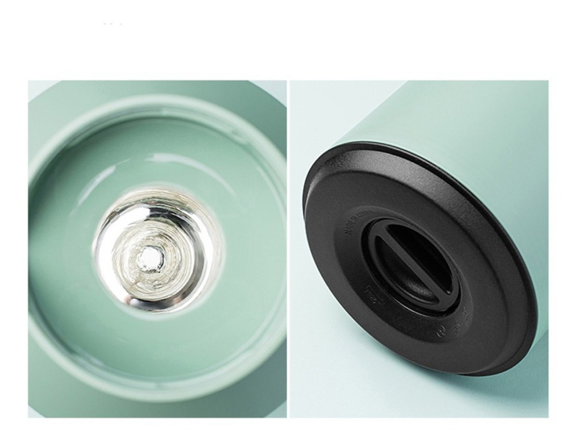 Exterior plásticos con tapa a rosca con botón para abrir y cerrar. Interior en vidrio resistente al calor para lograr una mejor aislación térmica.