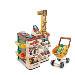 Juego de supermercado para niños con caja registradora POS. Incluye luces y sonido para hacer la experiencia más realista. Viene con varios alimentos para que los pequeños puedan hacer su surtido como más les guste. Requiere 2 pilas AA y 4 pilas AAA (no incluidas). Ideal para estimular la imaginación y el juego de roles.