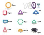 En la imagen detalla la variedad y cantidad de piezas, que vienen en una caja plástica practica para guardar.