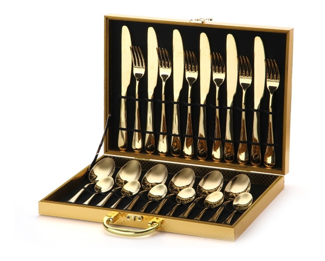 Elegante set de cubiertos de 24 piezas fabricados en acero inoxidable, diseñados para darle un toque sofisticado a tu mesa. Incluye cuchillos, tenedores, cucharas y cucharitas, todo organizado en un práctico maletín ideal para guardar o transportar. Resistente y duradero, es perfecto para reuniones, cenas especiales o uso diario. ¡Calidad y estilo en un solo producto!