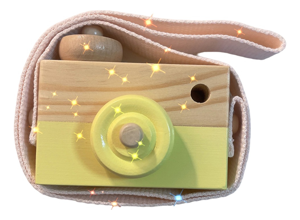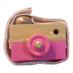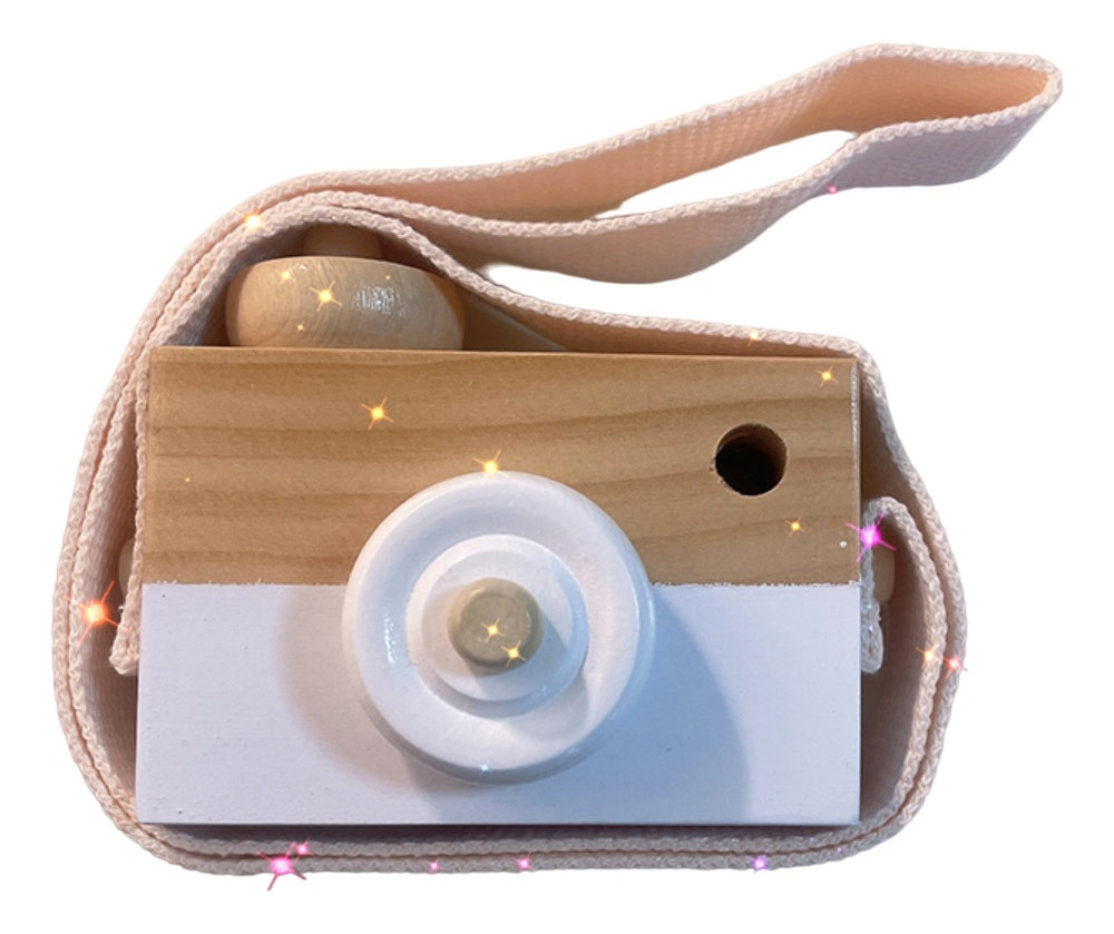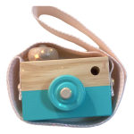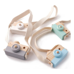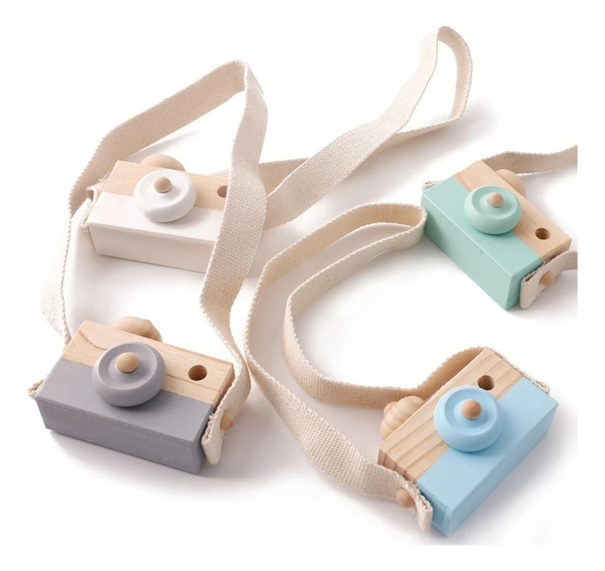 Cámara de fotos en madera juguete para niños y niñas, ideal para disfrutar de un momento alejado de pilas, sonidos y luces. Su diseño nórdico y sus colores calmos ayudan a buscar el juego desde un punto mas relajado.